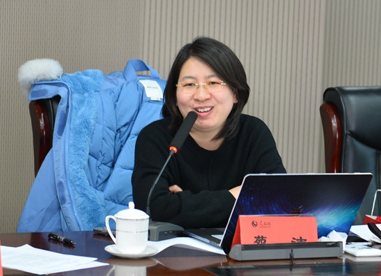 青岛大学党委宣传部部长吴世珍发言(宋歌/摄)