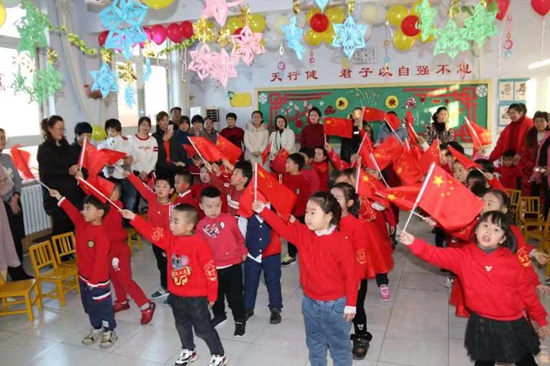 近日,山东省诸城市第二幼儿园举行2020年“庆元旦迎新年”节庆课程展演联欢活动。活动以“孝亲爱国”为主题,将感恩教育、爱国教育融入到一个个趣味盎然、精彩纷呈的亲子游戏和表演中,展示了幼儿健康成长的瞬间,共享家园迎接新年的喜悦。