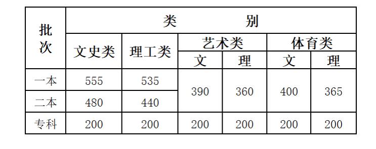 云南省2020年普通高校招生录取最低控制分数线