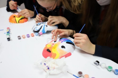 面塑的大熊猫捏得栩栩如生,中国功夫的招式比划得有模有样,典雅的秋菊在宣纸上展开了花瓣,京剧脸谱在笔下变得鲜活,饱含墨香的雕版倒印出古朴的汉字,靛蓝色染料仿佛为亚麻布施了魔法,清幽的茶香从手中的杯盏里弥漫开来……北京德威英国国际学校孩子们在老师的带领下在中华文化的海洋里遨游,眼里是掩不住的好奇与惊叹。