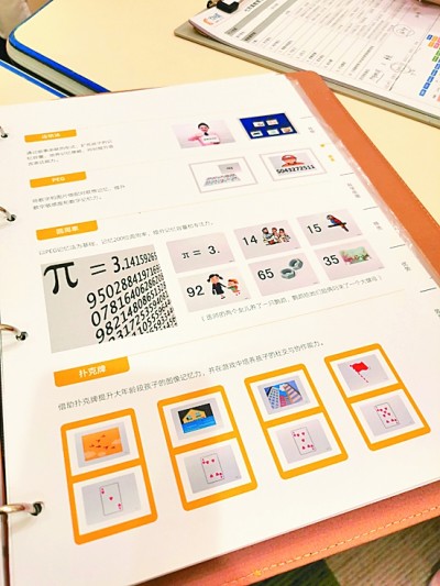 翻看七田真课程体系介绍手册后,记者惊讶地发现,圆周率作为主要内容被安排在3岁阶段的专项训练课程里。这节课的教学目标是,“记忆200位圆周率,提升记忆容量和专注力”。