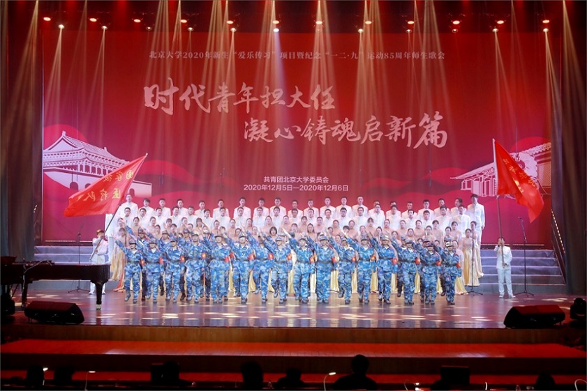 一代人有一代人的长征,一代人有一代人的担当。追忆85年前“一二·九”风雷激荡,中国青年高擎爱国主义旗帜,为救亡图存不懈斗争;如今站在崭新的历史起点上,中国青年勇担大任,为中华民族伟大复兴奉献青春韶华。12月5日和6日,一年一度的北京大学2020年新生“爱乐传习”项目暨纪念“一二·九”运动85周年师生歌会在百周年纪念讲堂观众厅隆重上演。