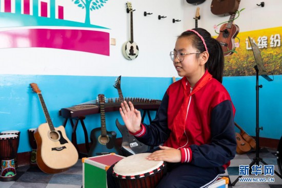 在黑龙江省安达市任民镇中心小学,“村里的孩儿”音乐班的孩子进行乐队排练(5月27日摄)。