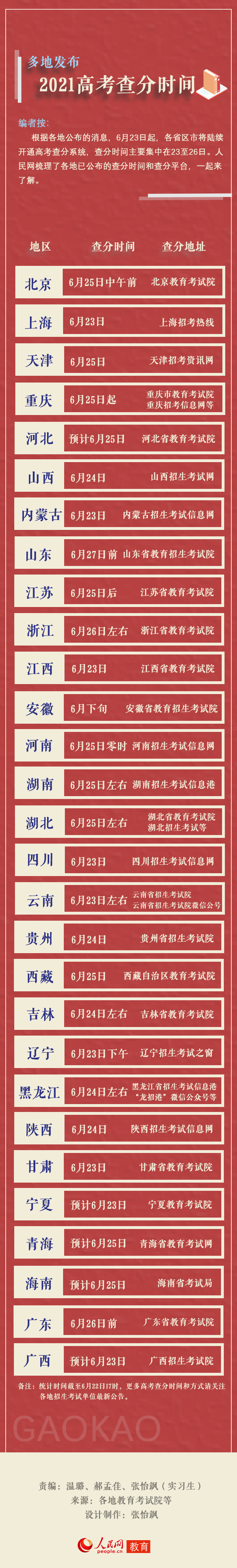 2021年高考成绩将陆续放榜 上海江西等地23日可查分