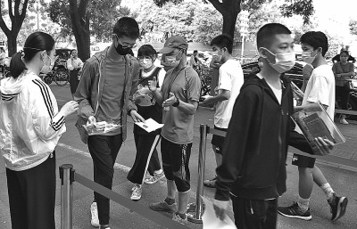 6月24日,北京市怀柔区第三中学考点考生正在有序进入考场。卜向东摄/光明图片