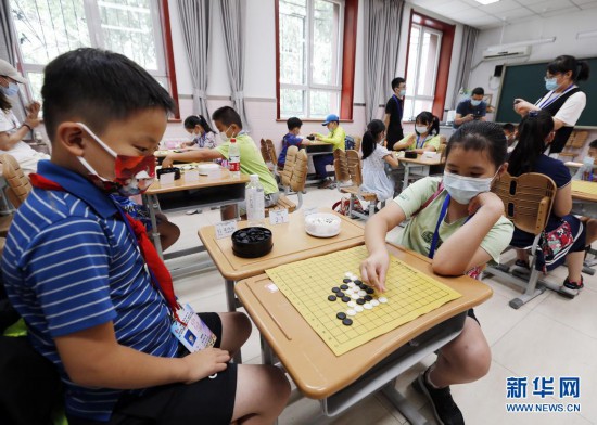 当日,为丰富暑期生活,北京东城区中小学生智力运动会棋类、数独比赛在府学胡同小学和西中街小学举行。9所中学和26所小学的近500名选手参加了比赛。新华社发(周良 摄)