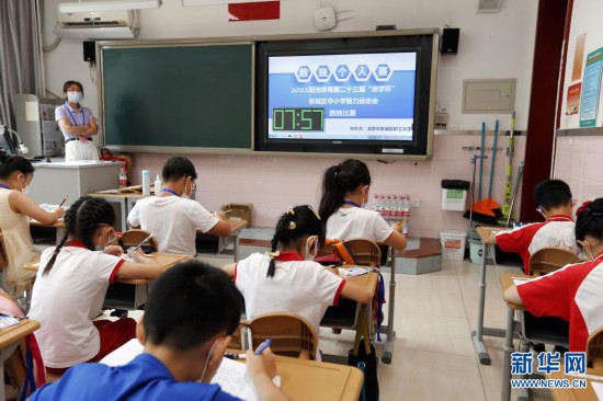 当日,为丰富暑期生活,北京东城区中小学生智力运动会棋类、数独比赛在府学胡同小学和西中街小学举行。9所中学和26所小学的近500名选手参加了比赛。新华社发(周良 摄)