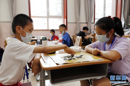 当日,为丰富暑期生活,北京东城区中小学生智力运动会棋类、数独比赛在府学胡同小学和西中街小学举行。9所中学和26所小学的近500名选手参加了比赛。新华社发(周良 摄)
