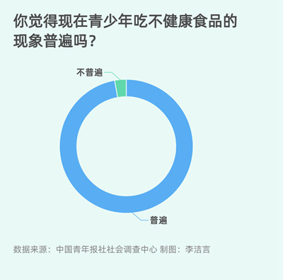 调查显示,97.2%的受访者感觉现在青少年吃不健康食品的现象普遍。