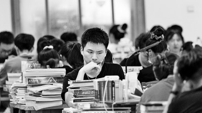 进入暑假,湖南省衡阳市南华大学图书馆座无虚席,部分大学生利用假期留在学校“充电”,积极复习为考研做准备。彭鹏摄/光明图片