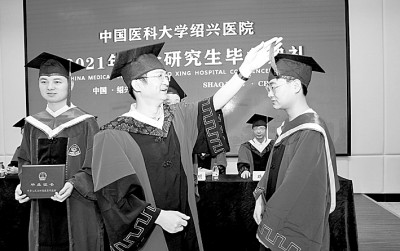 中国医科大学绍兴医院2021届硕士研究生毕业典礼,15名学子圆满完成学业。单明铭摄/光明图片