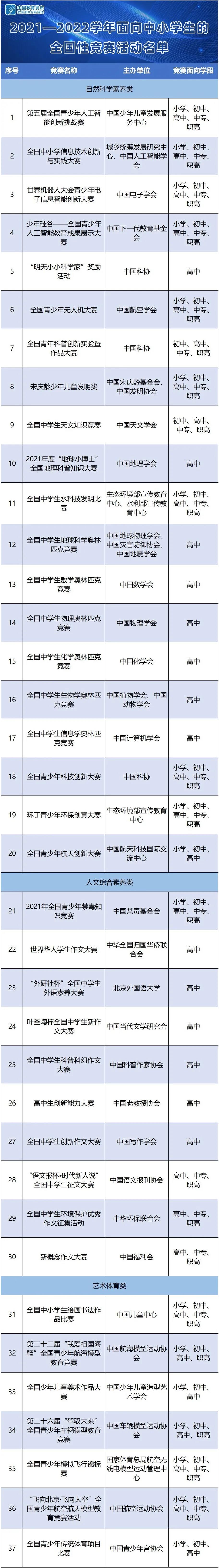 记者了解到,根据教育部办公厅此前印发的《关于面向中小学生的全国性竞赛活动管理办法(试行)》(下称《办法》)有关规定,面向中小学生的全国性竞赛活动实行清单管理制度,清单每年动态调整一次,在教育部门户网站公布并正式印发地方教育行政部门。竞赛以及竞赛产生的结果不作为中小学招生入学的依据。
