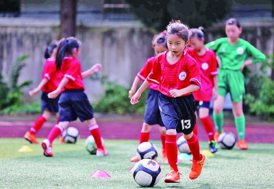 在安徽合肥和平小学第二小学少年宫,孩子们在进行足球训练。新华社发