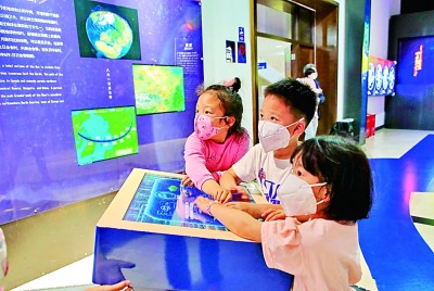 小朋友在北京天文馆内参观。刘宪国摄/光明图片
