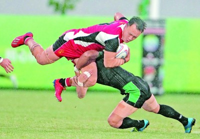 2021年9月18日,全运会的七人制橄榄球赛场上,山东队与北京队争夺金牌。当前,对于橄榄球这样对抗性较强的运动,广大青年人的参与度还不够高。新华社发