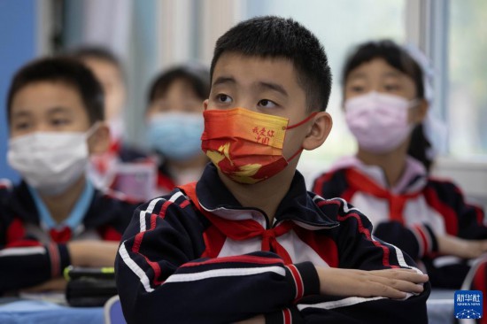 10月8日,哈尔滨市群力兆麟小学的学生在上课。