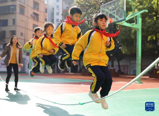 11月10日,衡阳市雁峰区环城南路小学的同学在跳绳。