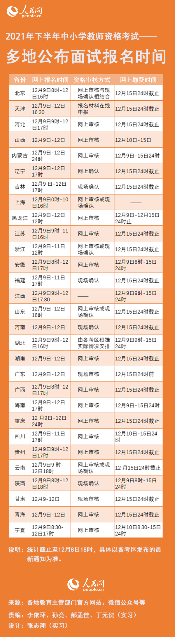 伟德国际1946bv官网北京12月8日电 记者从教育部考试中心获悉,2021年下半年中小学教师资格考试(笔试)成绩于今日正式发布,面试报名工作将于12月9日开始,面试日期为2022年1月8日至9日。此次面试在31个省(自治区、直辖市)举办,目前全国多地已正式发布面试报名公告,伟德国际1946bv官网对相关时间安排进行了梳理,以供考生参考。