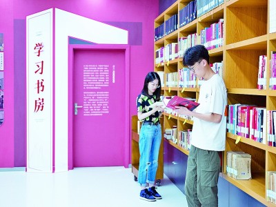 东南大学学生在思想政治理论学习基地“学习书房”学习。杭添摄/光明图片