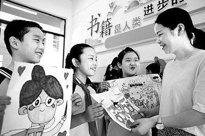 合肥市瑶海区幸福路小学,孩子们将自己制作的手工艺品送给老师,表达教师节祝福。 新华社发