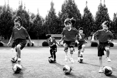 河北省邢台市立德小学学生参加足球兴趣晚托班。 新华社发