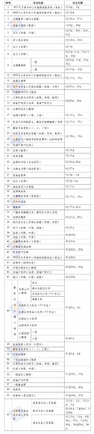 2022年考证时间表正式出炉 法考时间明确