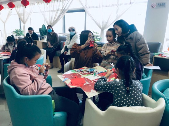 寒假期间,银川市金凤区通福社区为辖区青少年准备了多项文化活动,这是剪纸“非遗”传承人李剑正在指导孩子们制作手工剪纸。新华社记者 艾福梅 摄