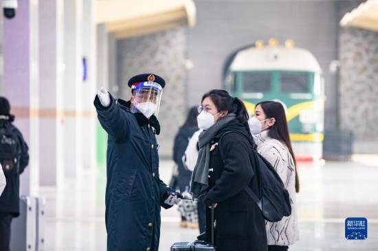1月17日,西安火车站工作人员为返乡高校学生提供乘车引导。新华社发(刘翔摄)