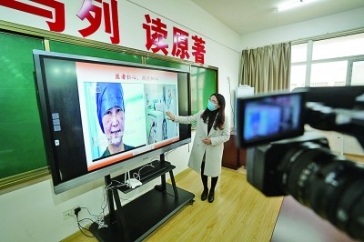 江西南昌豫章师范学院思政课教师通过互联网给学生们上课。新华社发