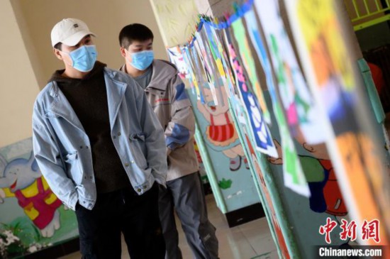 参观者观看自闭症孩子的画作。 韦亮 摄