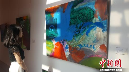 图为市民观看自闭症儿童画展。 陈植炜 摄