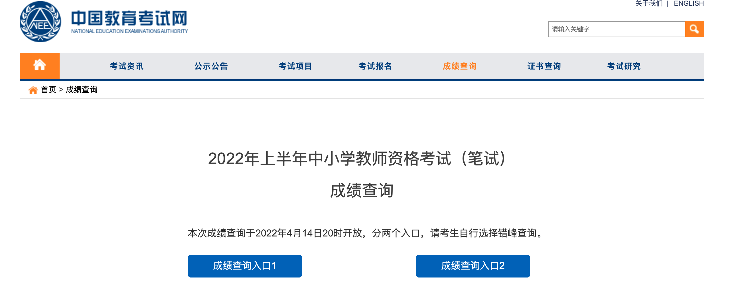 2022年上半年中小学教师资格考试(笔试)成绩今日可查