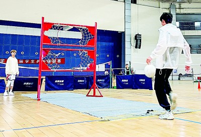 5月17日,在四川大学江安校区,学生体验传统体育运动蹴鞠。新华社发