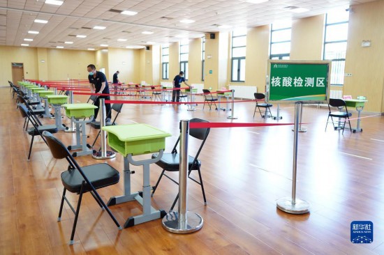6月5日在中国农业大学附属中学考点拍摄的核酸检测区。