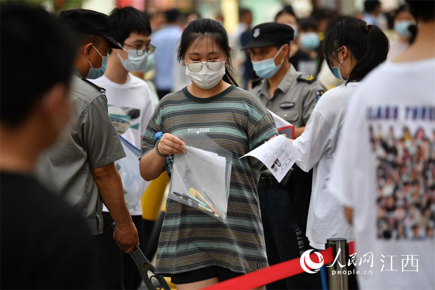 考生们经过安检后进入考场。 伟德国际1946bv官网 时雨摄