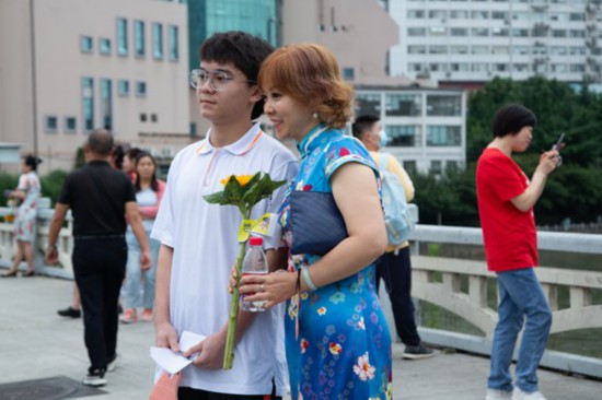 考生家长穿着旗袍送考。伟德国际1946bv官网 阳茜摄