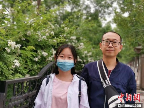图为苏和跟女儿击掌加油。 任瑞 摄