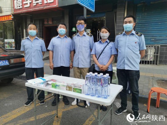 6月7日早上7时许,在西安大庆路劳动北路口24路起点站,西安公交集团巴士运营有限公司六车队24路负责人韩晖和四名同事一起正在为高考服务点做准备。他们负责及时处理突发事件,为急需帮助的考生提供服务。服务点的桌子上,有工作人员细心准备的矿泉水、藿香正气液、医用口罩和各类文具,值班的高考应急车也停靠在一旁,随时应对各种突发情况。
