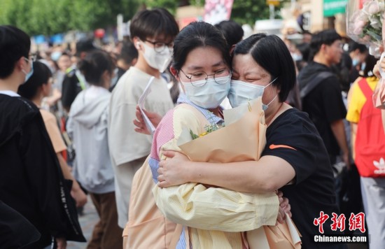6月9日,江苏省南通市2022年普通高校招生全国统一考试南通大学附属中学考点外,家长将鲜花送给考生。 中新社发 徐培钦 摄 图片来源:CNSphoto