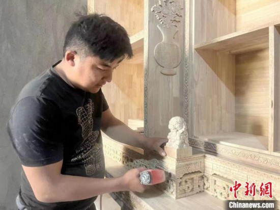 说干就干,2021年他在村里开了木材加工厂,为此,他还特地去外地学习操作方法,“藏式家具的雕花很复杂,但是我有壁画的绘画功底,学习起来非常快。”
