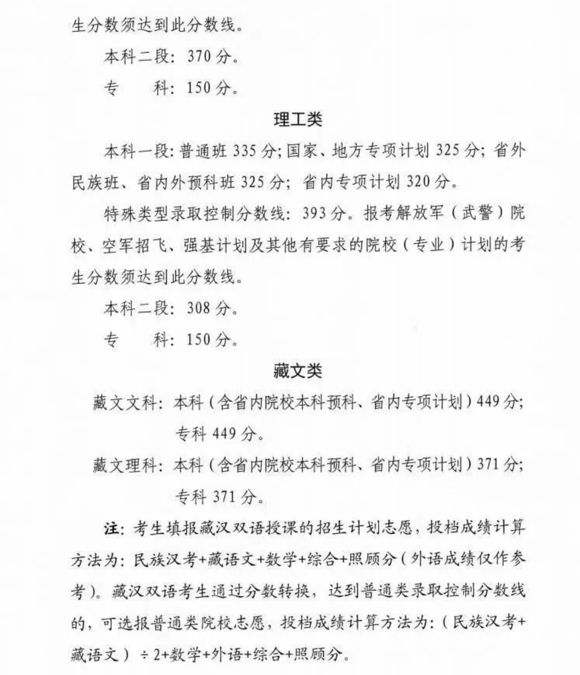 2022青海高考分数线发布:本科一段普通班文史类409分、理工类335分