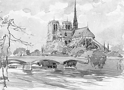 塞纳河上远眺巴黎圣母院 吴良镛1987年绘
