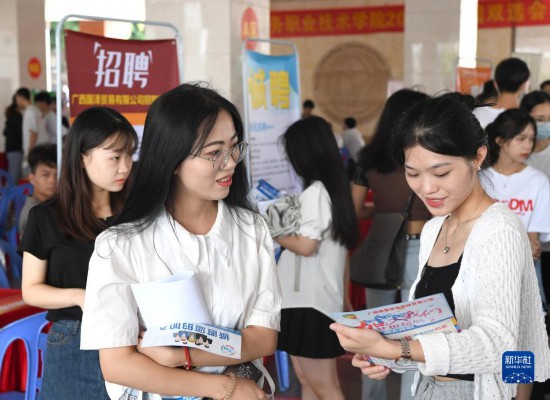 7月2日,广西国际商务职业技术学院学生在校园双选会上求职。