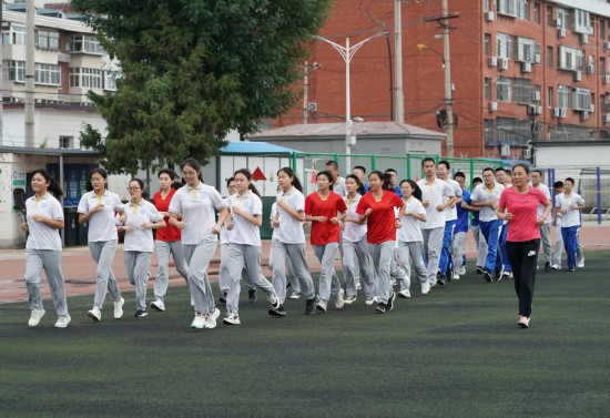 6月13日,在北京市平谷区第三中学,初三学生在上体育课。新华社记者任超摄
