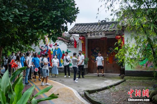 图为外籍师生行走在绵竹年画村。 刘忠俊 摄