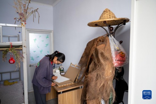7月26日,在河北省承德市隆化县张三营镇东风村,宫希希在驻地宿舍整理自己制作的植物标本。