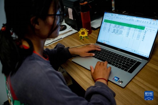 7月25日,在河北省承德市隆化县张三营镇东风村,宫希希在驻地统计农户的工时,并进行成本核算。