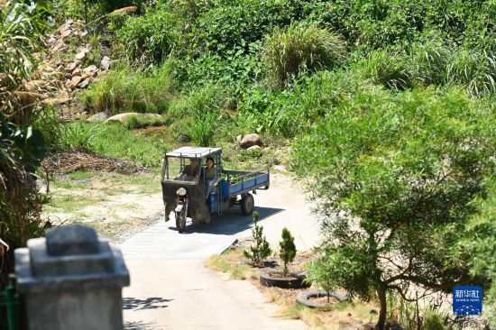 8月5日,在福鼎市嵛山岛,汪淇和父亲开着载有玉米杆的三轮摩托车去羊舍。
