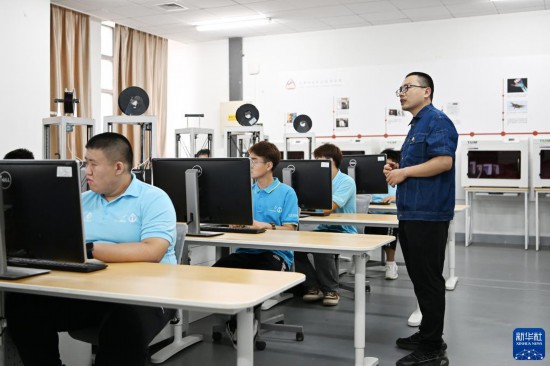 刘世雄(右一)在天津机电职业技术学院的教室内给学生讲课(8月8日摄)。新华社记者 李然 摄