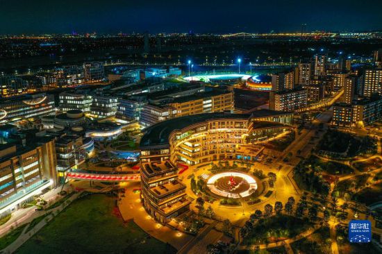 这是香港科技大学(广州)校园夜景(8月15日摄,无人机照片)。